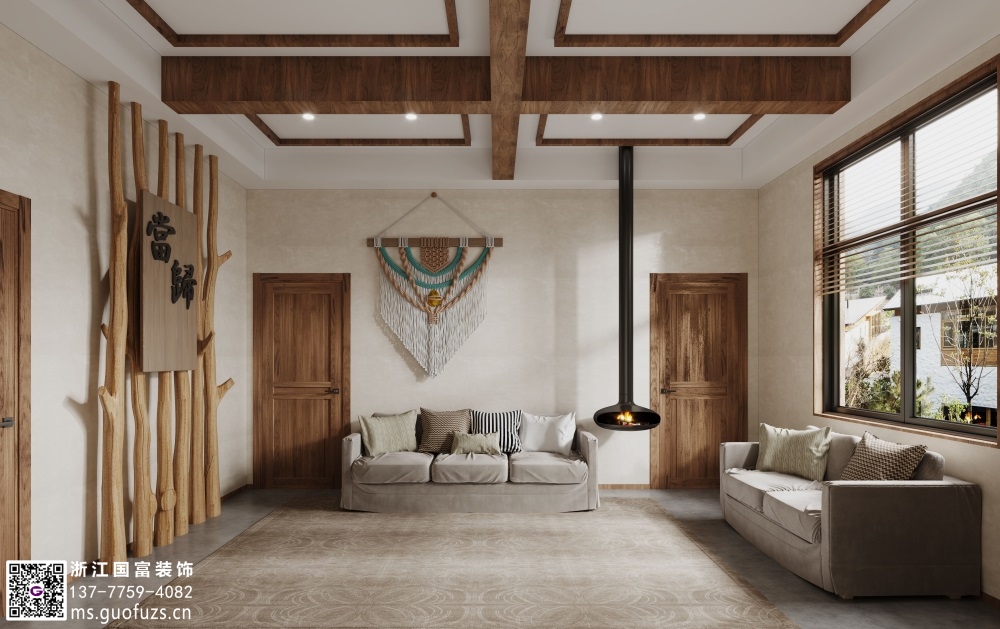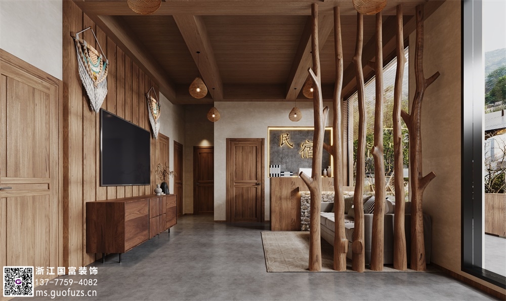 原木風格民宿裝修設計效果圖